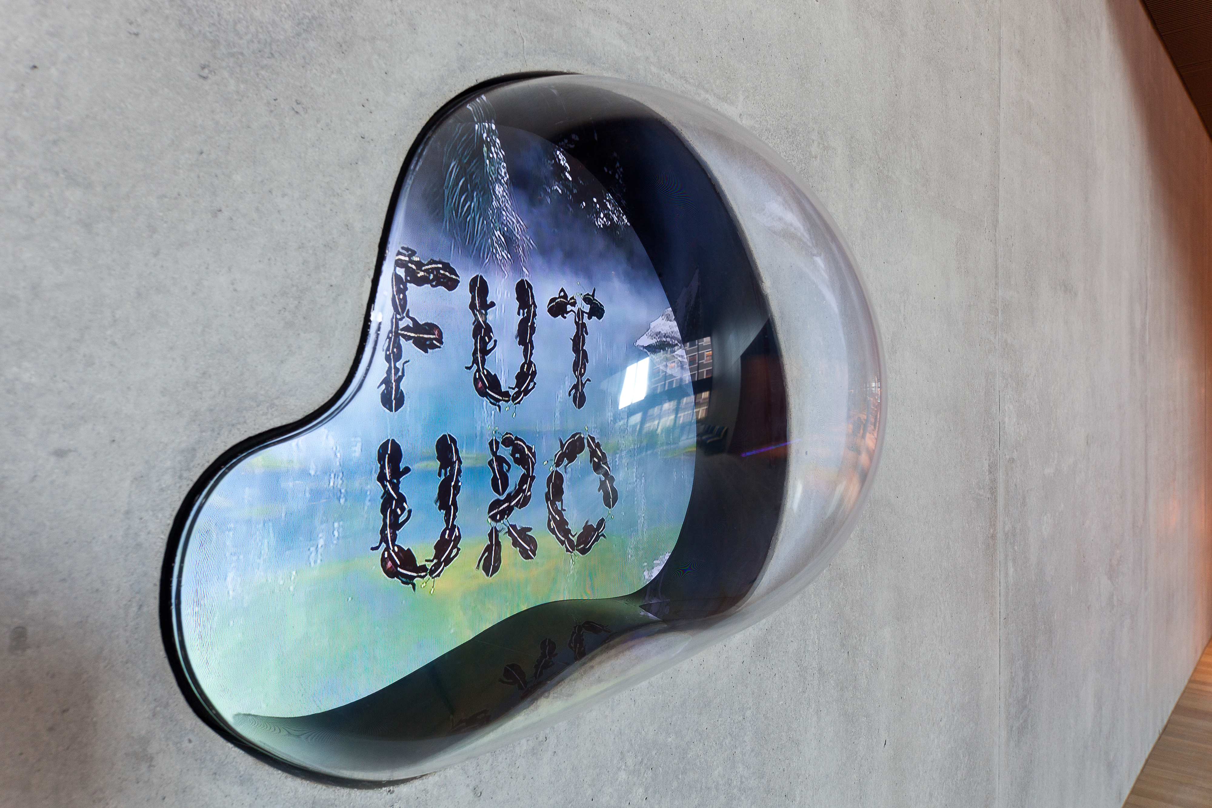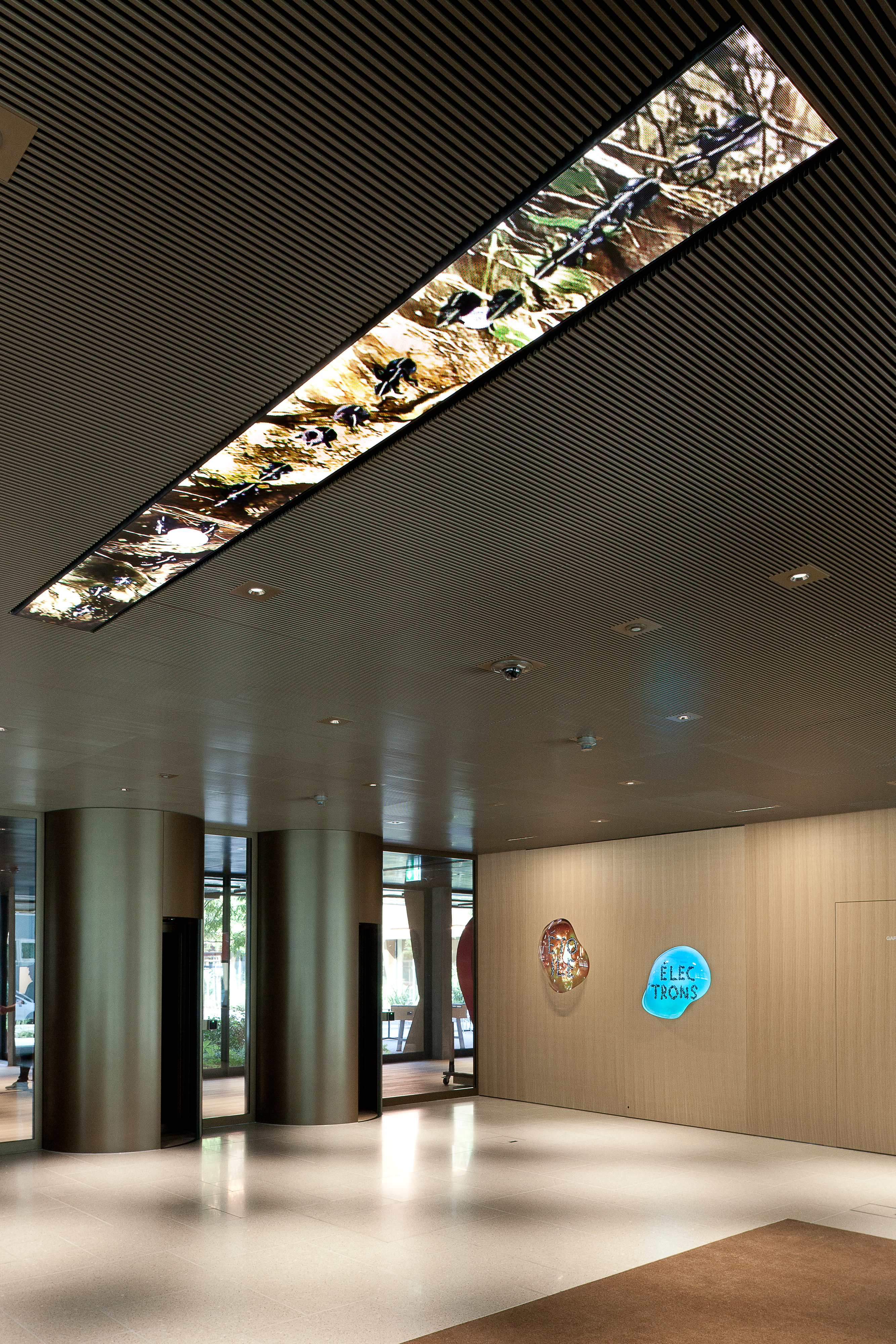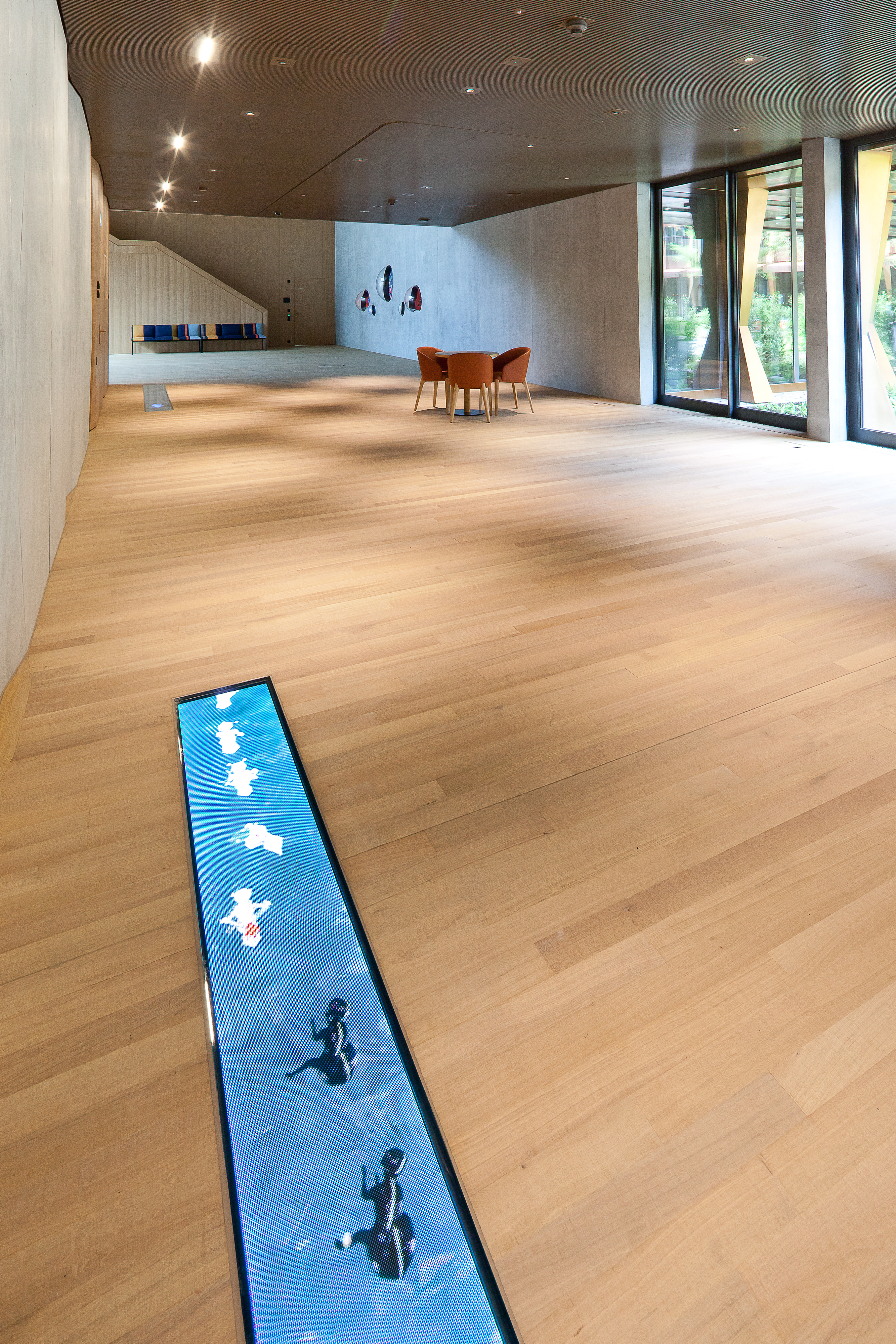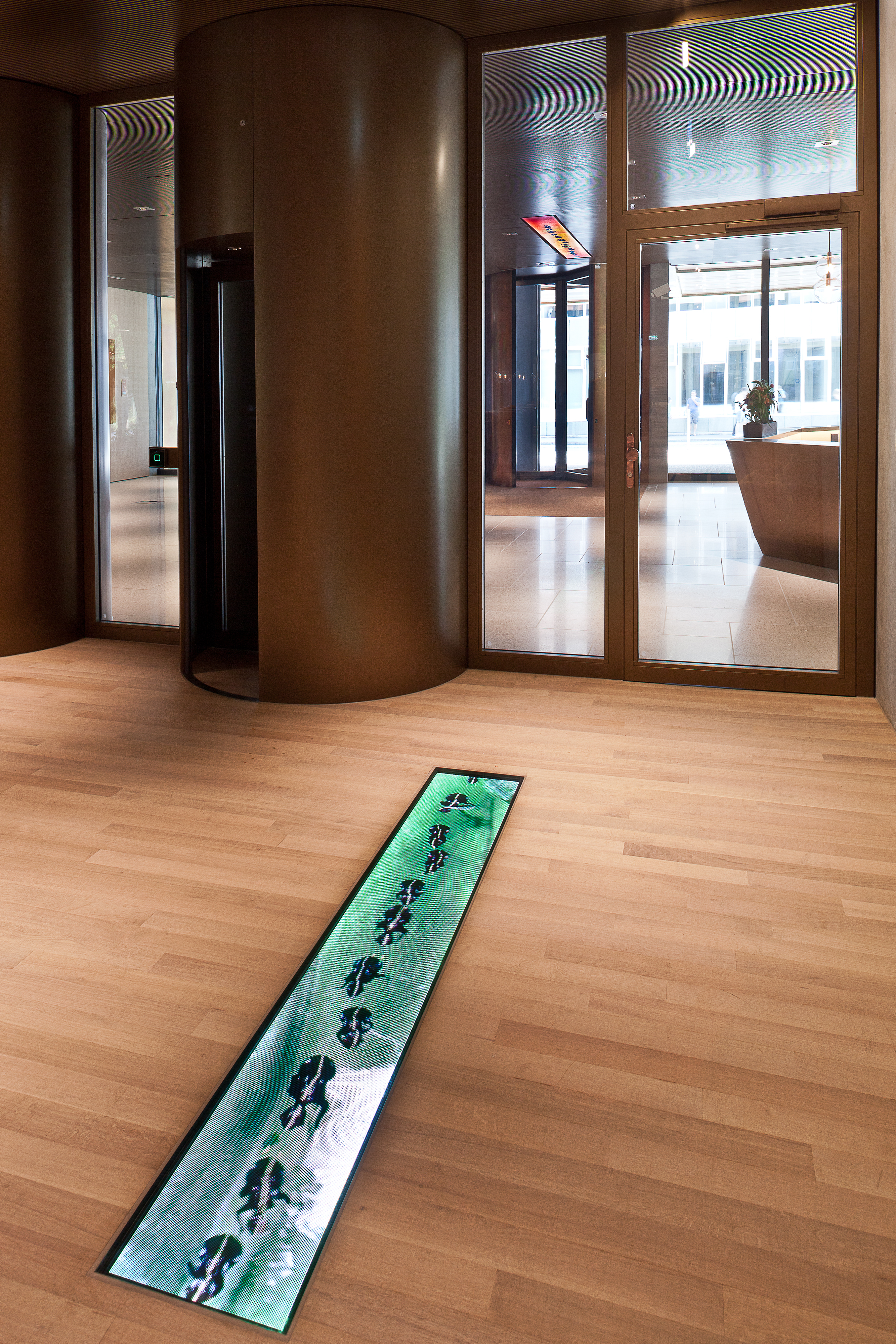 Upon approaching the building, visitors are welcomed by the first ants of an art project that runs through the entire meeting zone on the ground floor. «Where does the rainbow end?» is an art & architecture project by Katja Loher, a Swiss artist living and working in New York.
